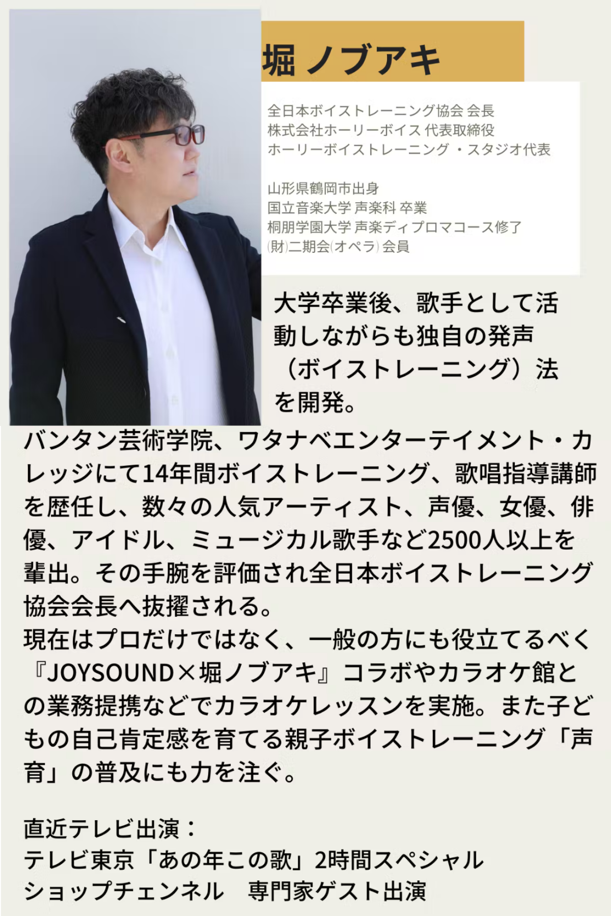 はじめまして!社団法人全日本ボイストレーニング協会会長の堀ノブアキと申します。数あるプロジェクトの中からご覧いただきありがとうございます!