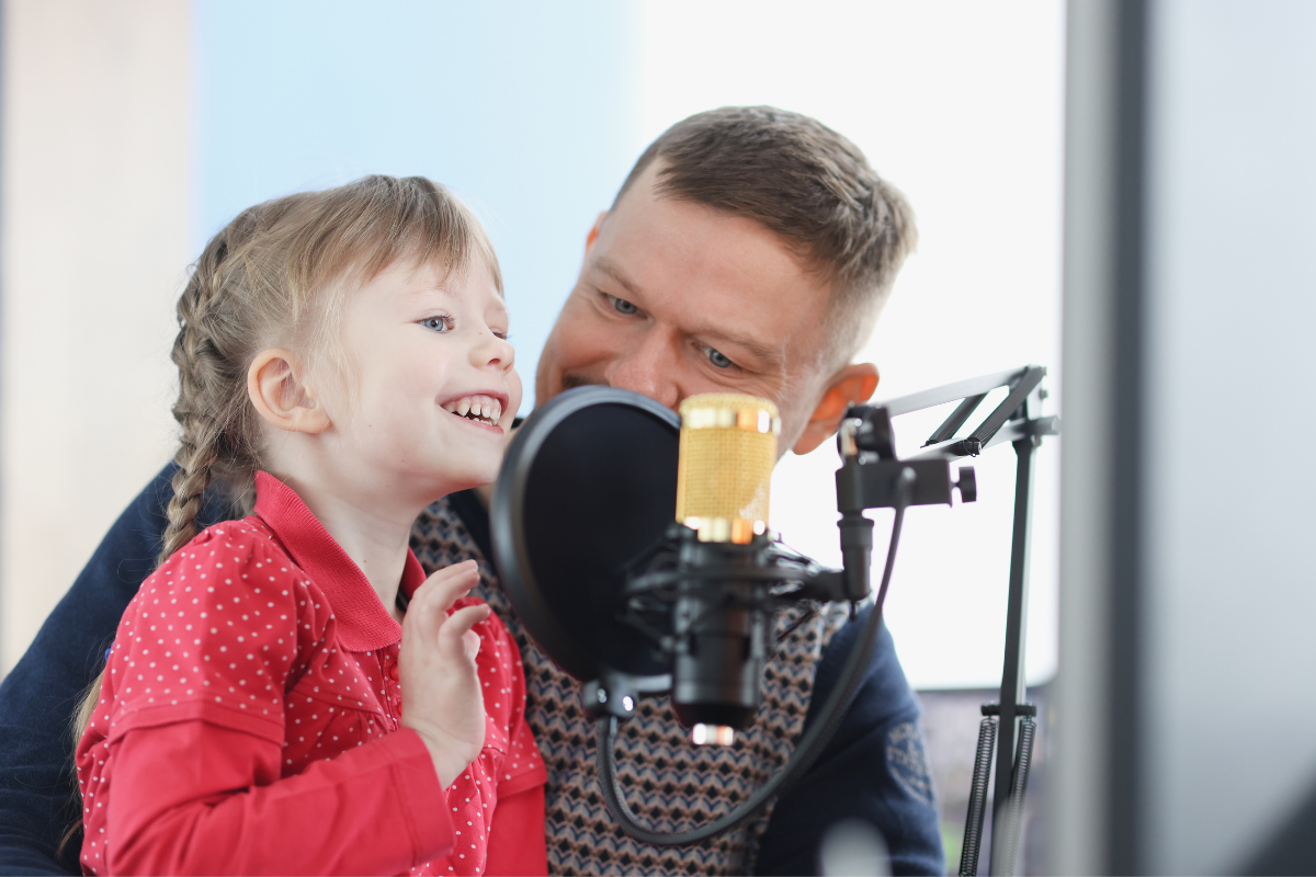 人前で元気よく話せる(話すことに自信がつく )ことで自己肯定感が高まり、発声×全身運動( 姿勢、呼吸、ストレッチ等)により声とともに脳や体の発達を促す声活親子レッスンを受講できます