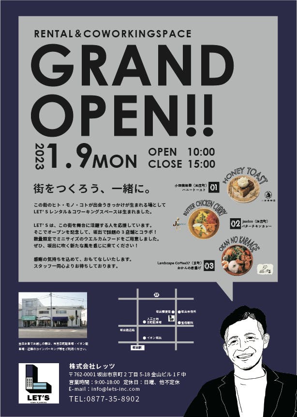 ここを坂出市の情報発信基地として運営することで、坂出市の魅力発信と市外からの集客に力を注ぎたいと思っています。
