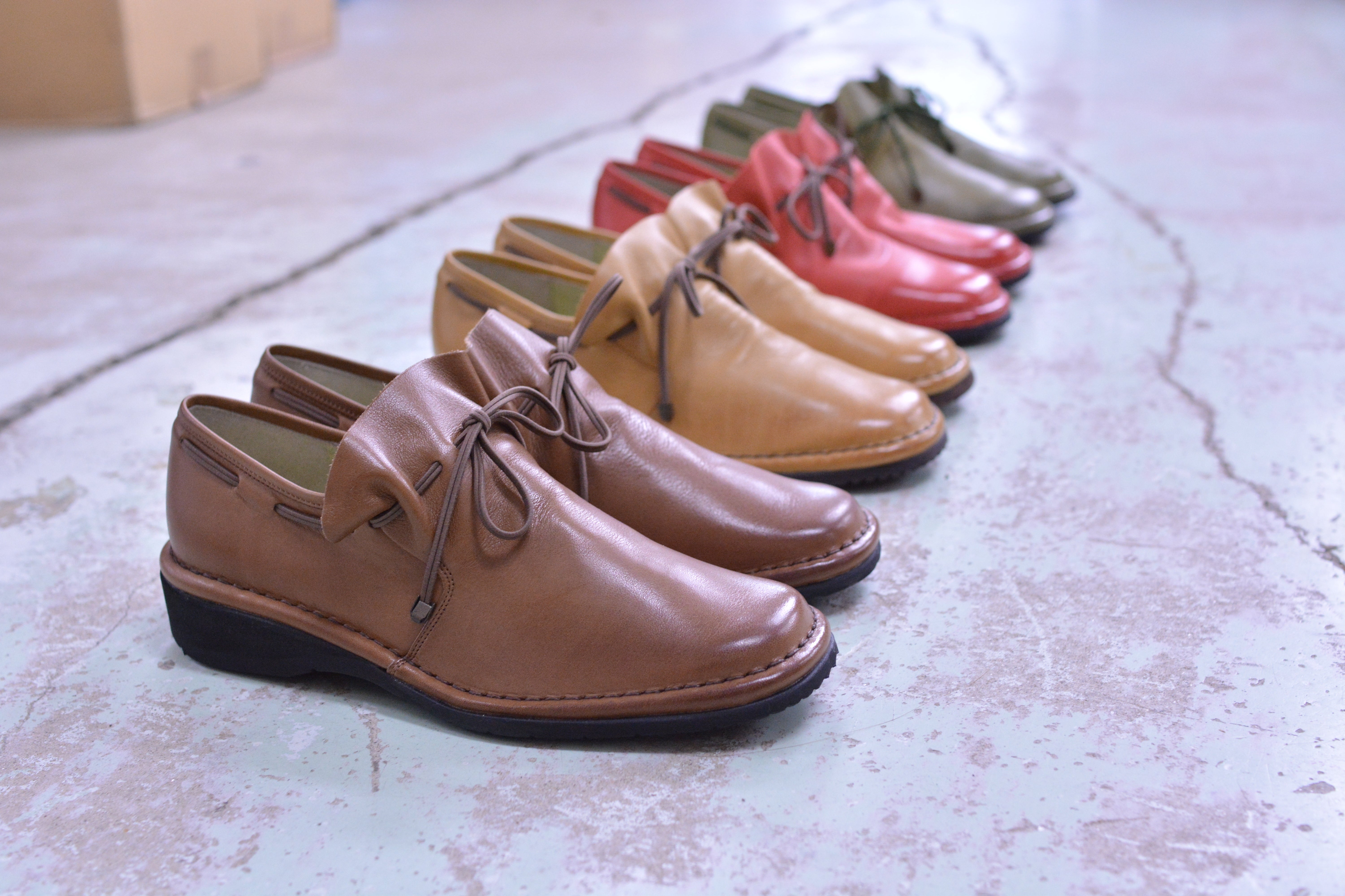ふんわりと心地よく年代も性別も関係なく、思うまま自由に動ける。歩くため(生きるため)のものだから、履き心地にこだわって、革、裁断、縫製、組み立て、販売まで自分達の手で取り組みます。