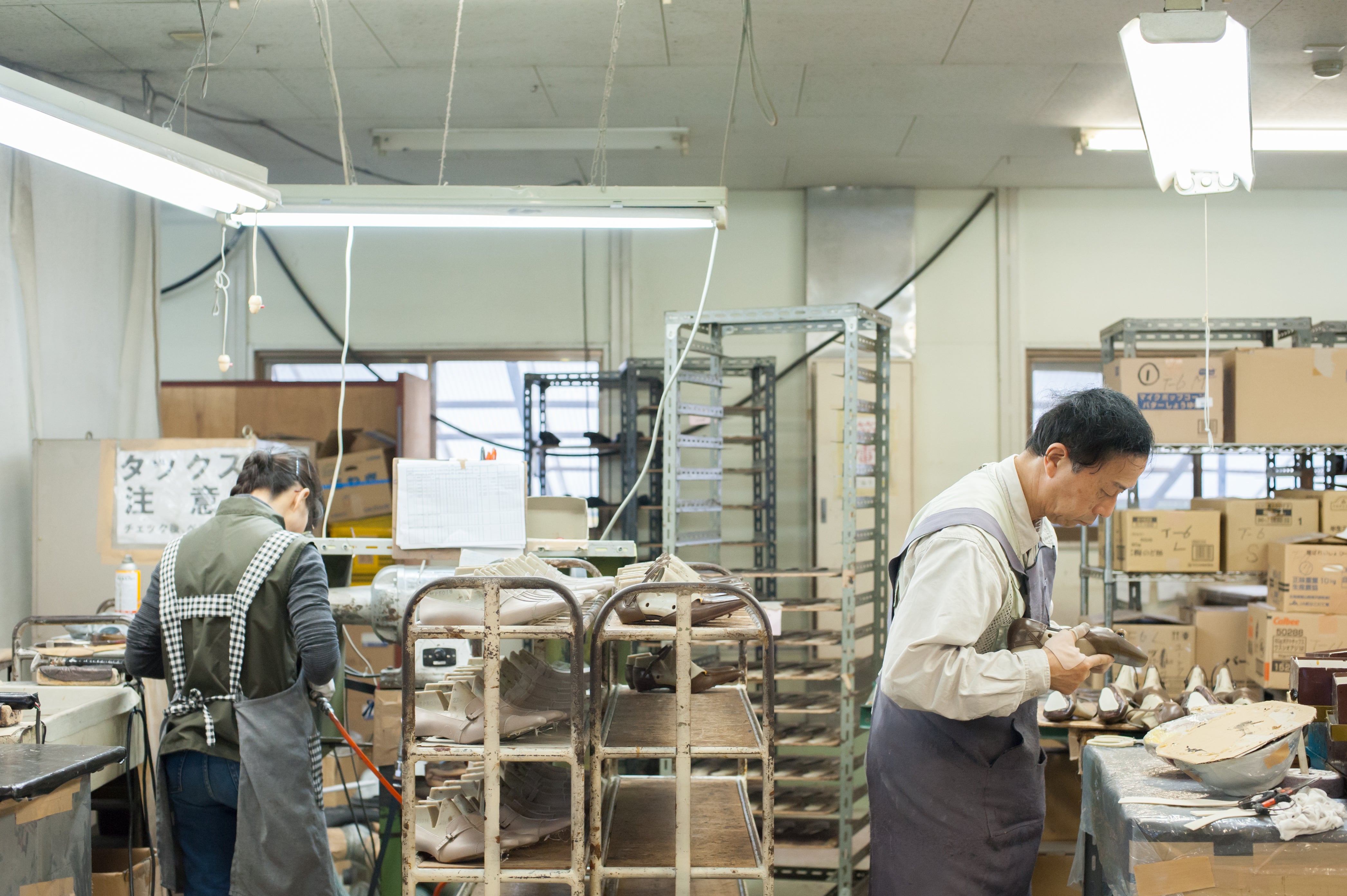 佐賀の山の上の工房で、職人の愛情を受けながら作られる靴たち。