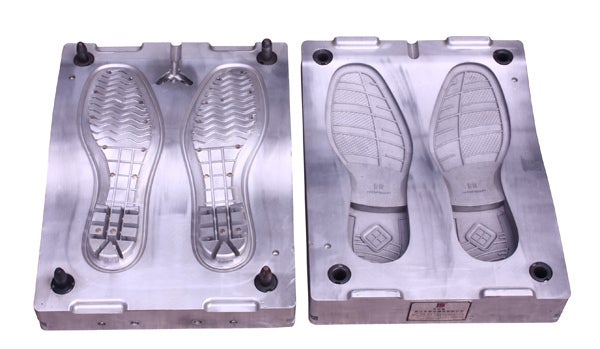 本底(モールドソール)を作るための型。流しこんで使うタイプ。ワッフルのように上下から熱をいれて型をとります。大掛かりな装置なのですが、実際に靴になると目には見えないものなのでご存じない方も多いのでは。サイズごとに18万×5サイズで90万。