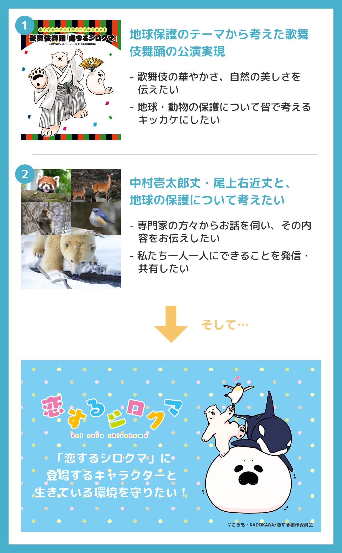 今回のプロジェクトは、「恋するシロクマ」のアニメ制作に携わる私たちが、北極の生物について改めて調べた時に地球で起きている様々な問題を知り、