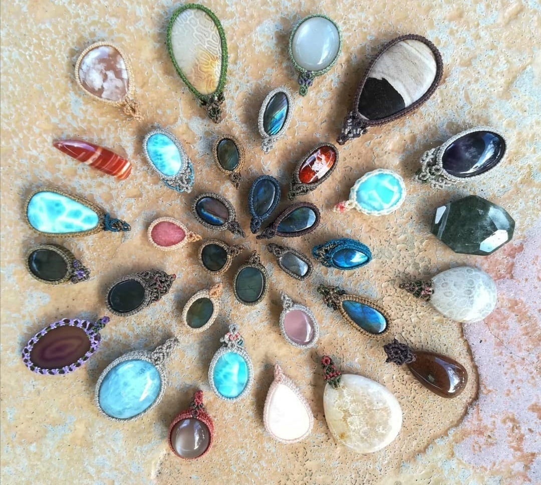 マクラメとは紐を編んで装飾するという技法で、私はこの技法を用いて天然石アクセサリーを編んでいます。