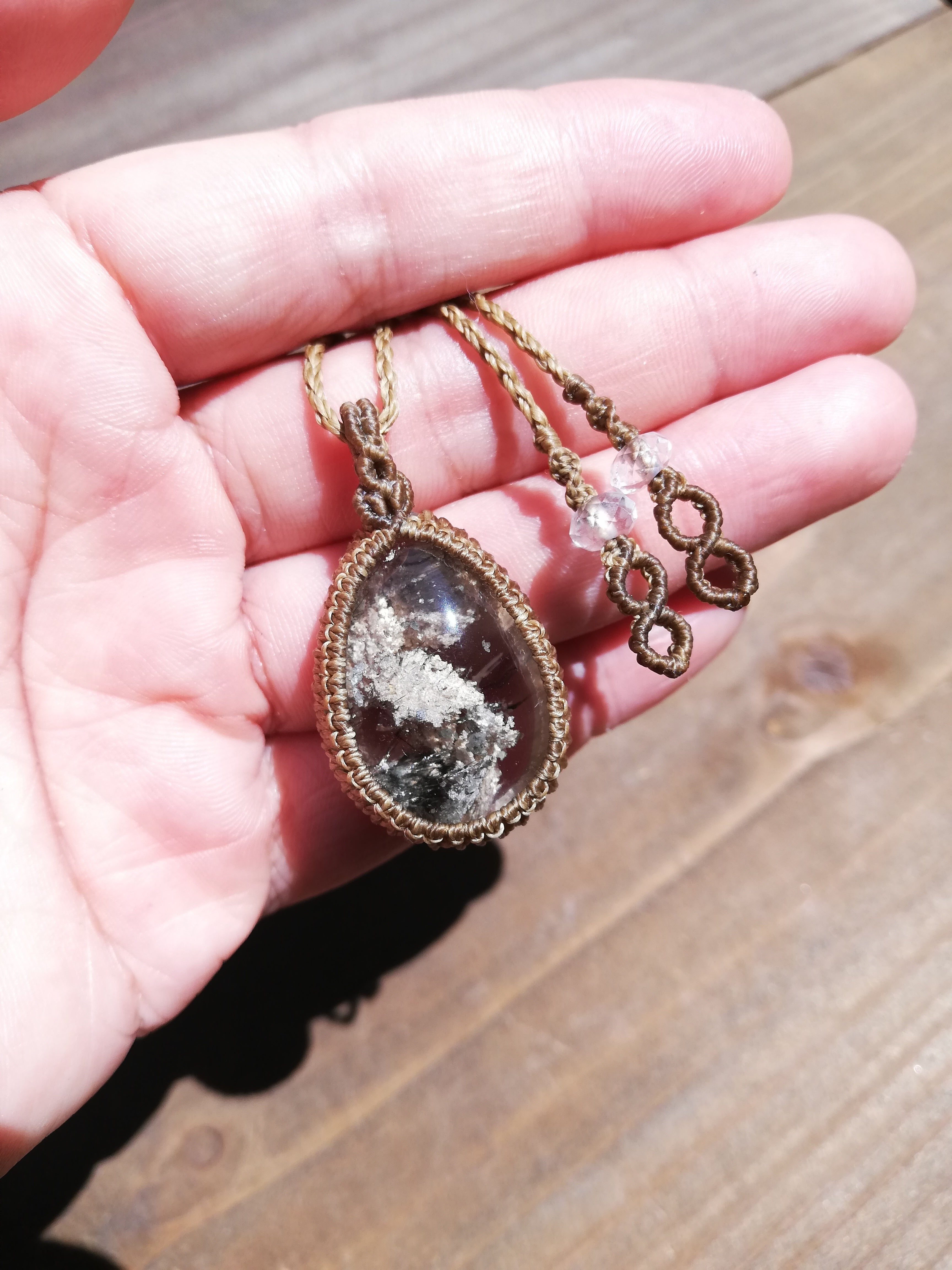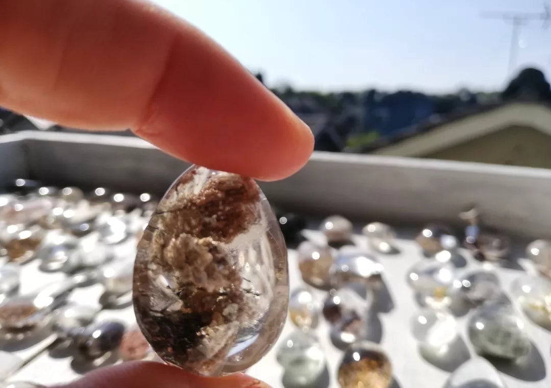 ガーデンクオーツは一つ一つ異なる世界観を持ち、水晶の中に広がる景色とエネルギーの間にとても深い関わりのある石です。 総じて地に足を着ける事を教えるグラウディングの力が強い石です。遍路中、毎日歩くことによってよりグラウディングのエネルギーが増すのかなあと思います。