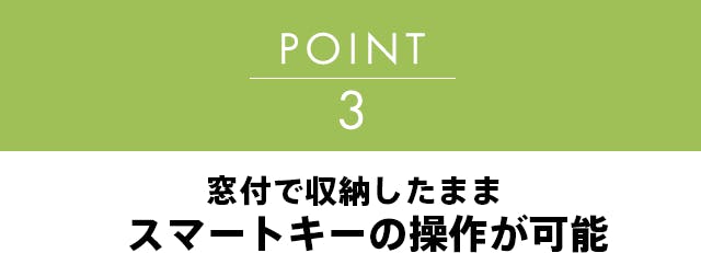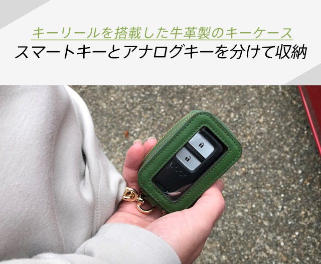 ケースに入れたままスマートキーを使えるクリア窓で機能性もバッチリ。