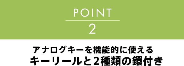 アナログキーを伸ばして使えるキーリール搭載で、取り外しをせずにそのまま使用可能。