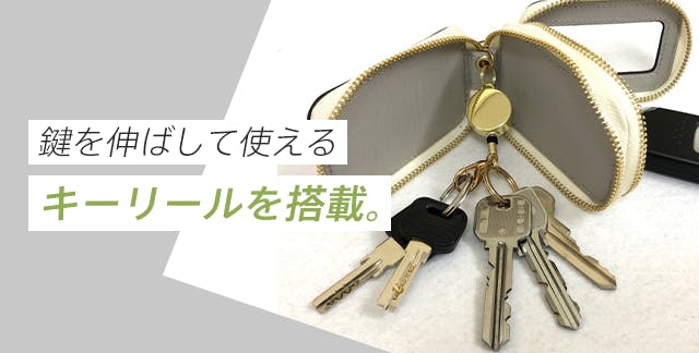 【NOVICKY】ではバッグに付けたケースを外さなくてもケースから鍵を伸ばして使えるキーリールを搭載。