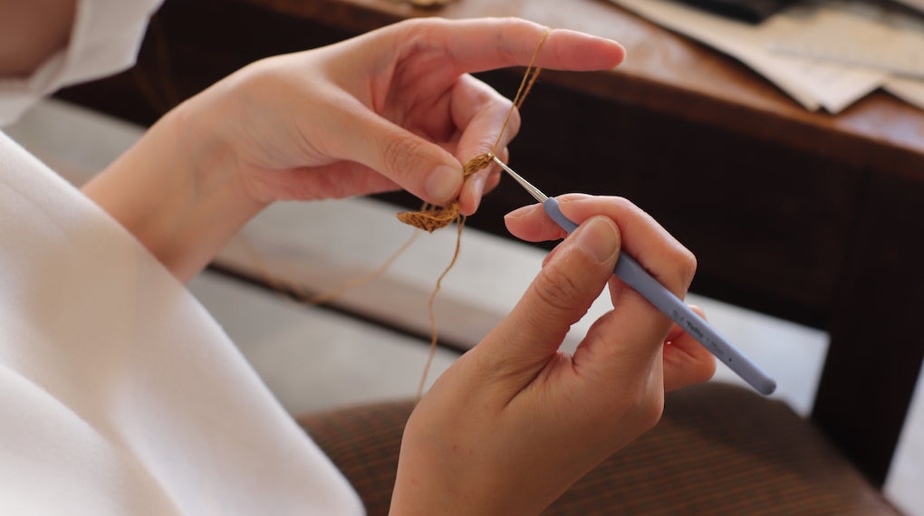 さらに、工賃が低価格に設定されている場合が多い「就労支援事業所」さんに、適正価格でのお仕事を発注しています。誰が作業をしても仕上がりのクオリティに影響が出ないような単純作業(例えば、編み機のレバーを左右に動かすだけ、糸にビーズを通すだけ、など)を、製品製造の工程から抜き出してお願いしています。