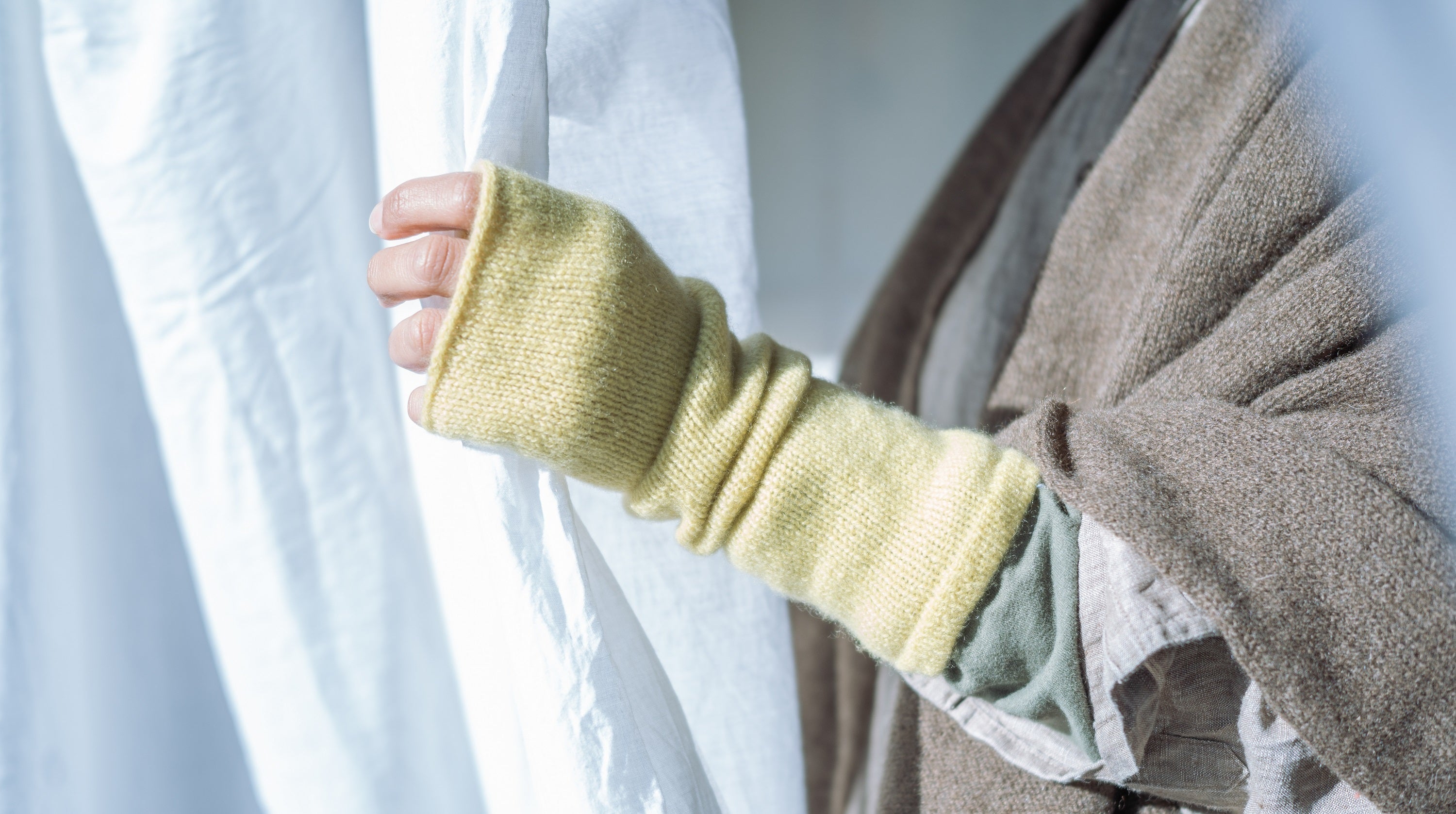 ▼カシミヤ100% 手編み機で作るアームウォーマー