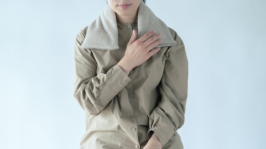 毎日アトリエに通って製造の担い手となってくれているニット職人の皆さんが、案を出し合いながら試行錯誤をして完成させた製品です。体にも顔にも使用できるように、編み方を工夫してやさしく気持ちのよい肌触りになるように調整を繰り返しました。ぜひお試しいただきたいです。