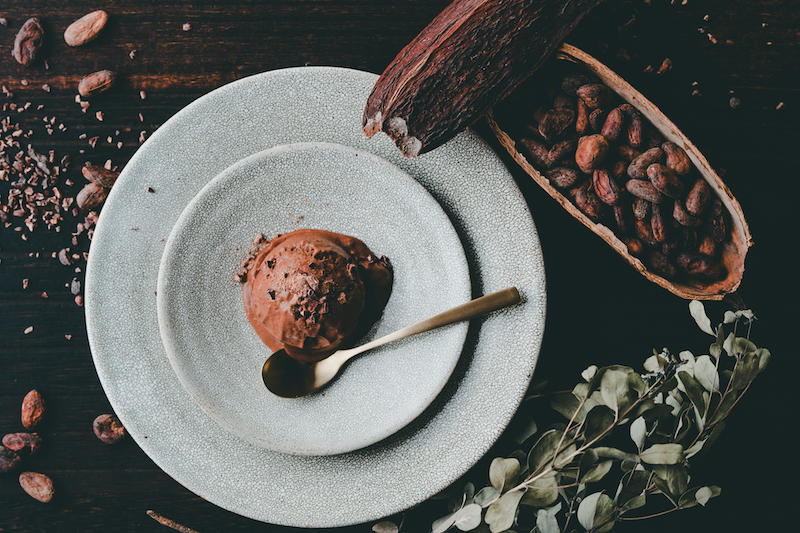 発酵や加工の試行錯誤を続け完成した、フルーティーで華やかな酸味のあるカカオパウダーをアイスクリームにすることで、いままで食べたことのない香りが感じられます。
