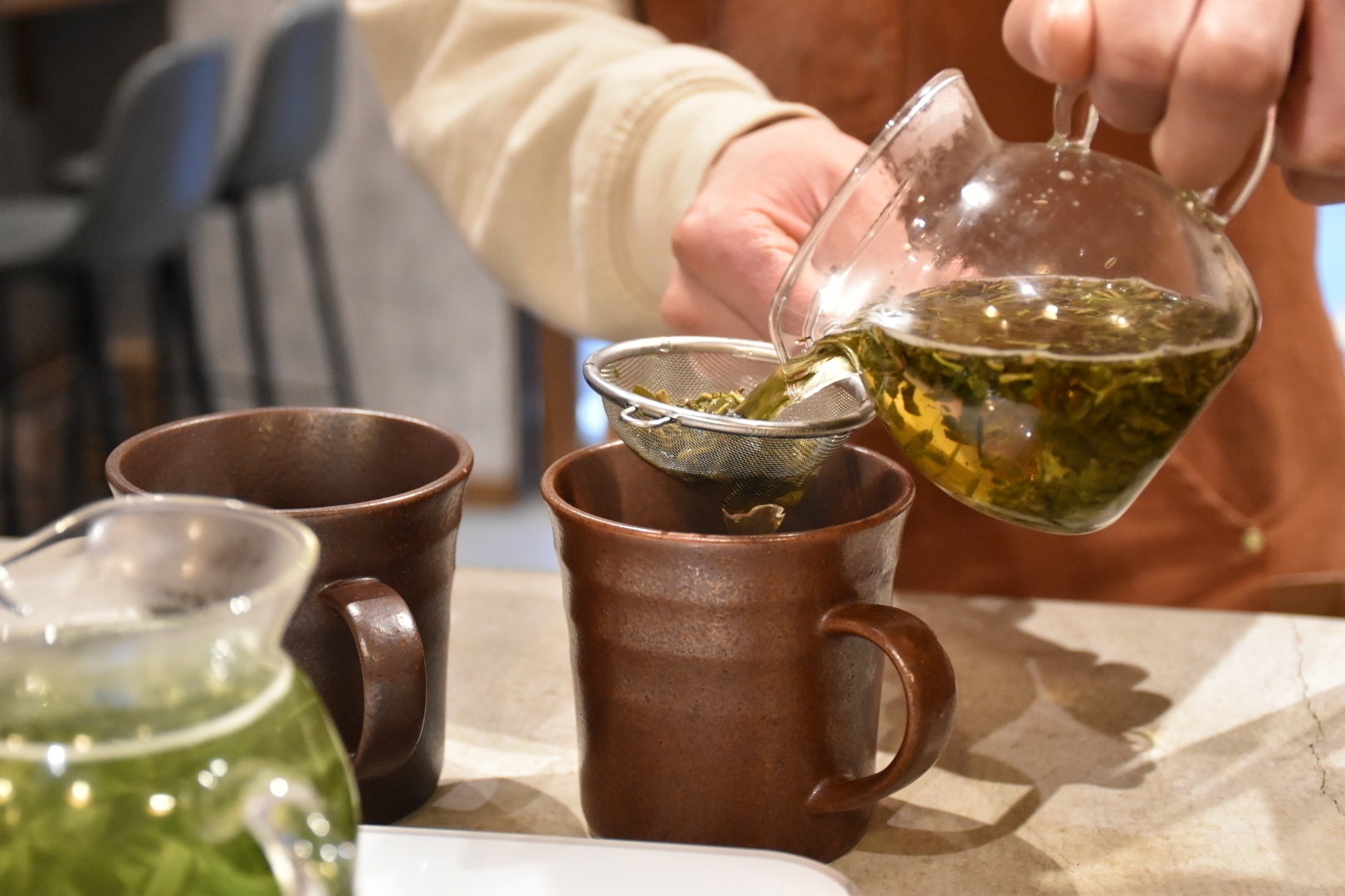 基本的に浅煎りの茶葉を使用。温度管理と抽出時間を徹底し、一番香り高く、甘みも引き出せると感じたポイントで抽出を行っています。特に浅煎り特有の、茶葉の個性が伝わる甘みが分かりやすく、お客様にも美味しいと感じてもらえている部分となっています。
