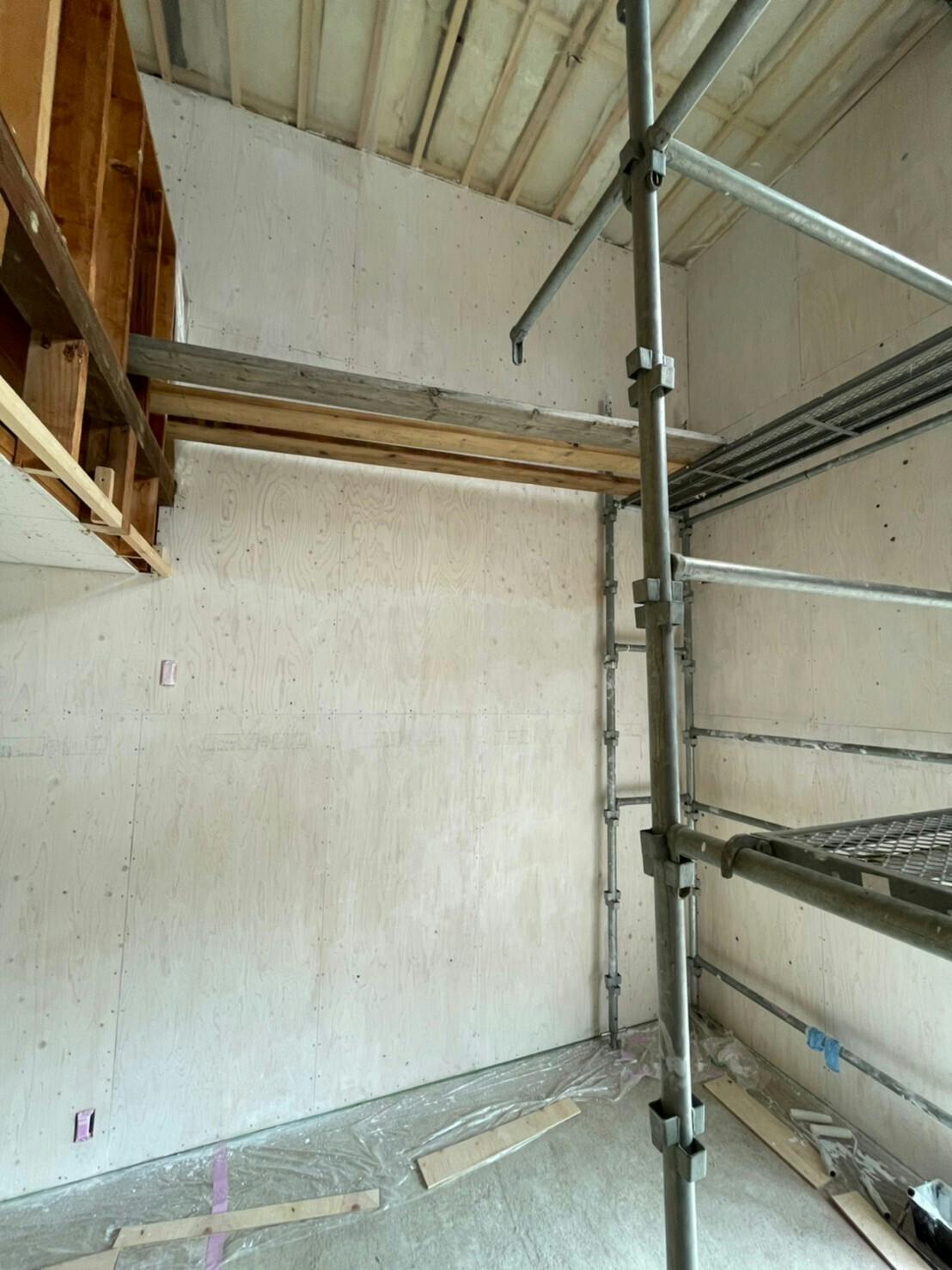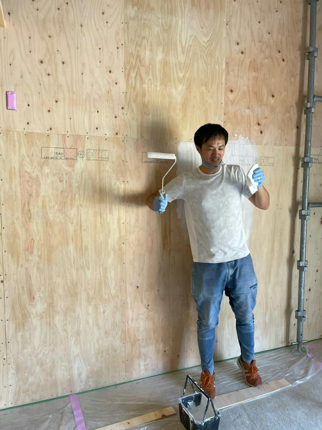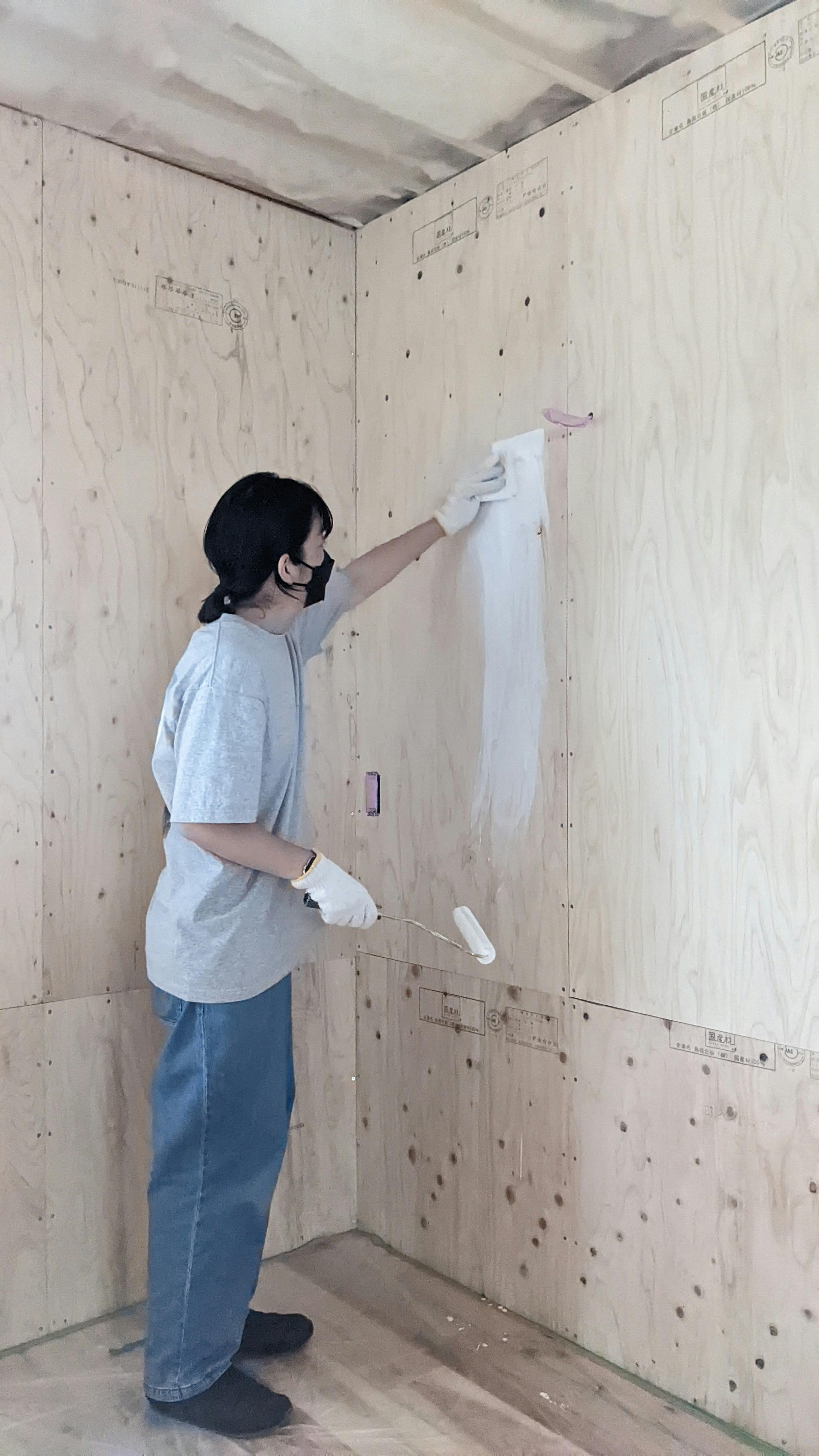 あっという間に合板の壁面全てを塗装することができました!