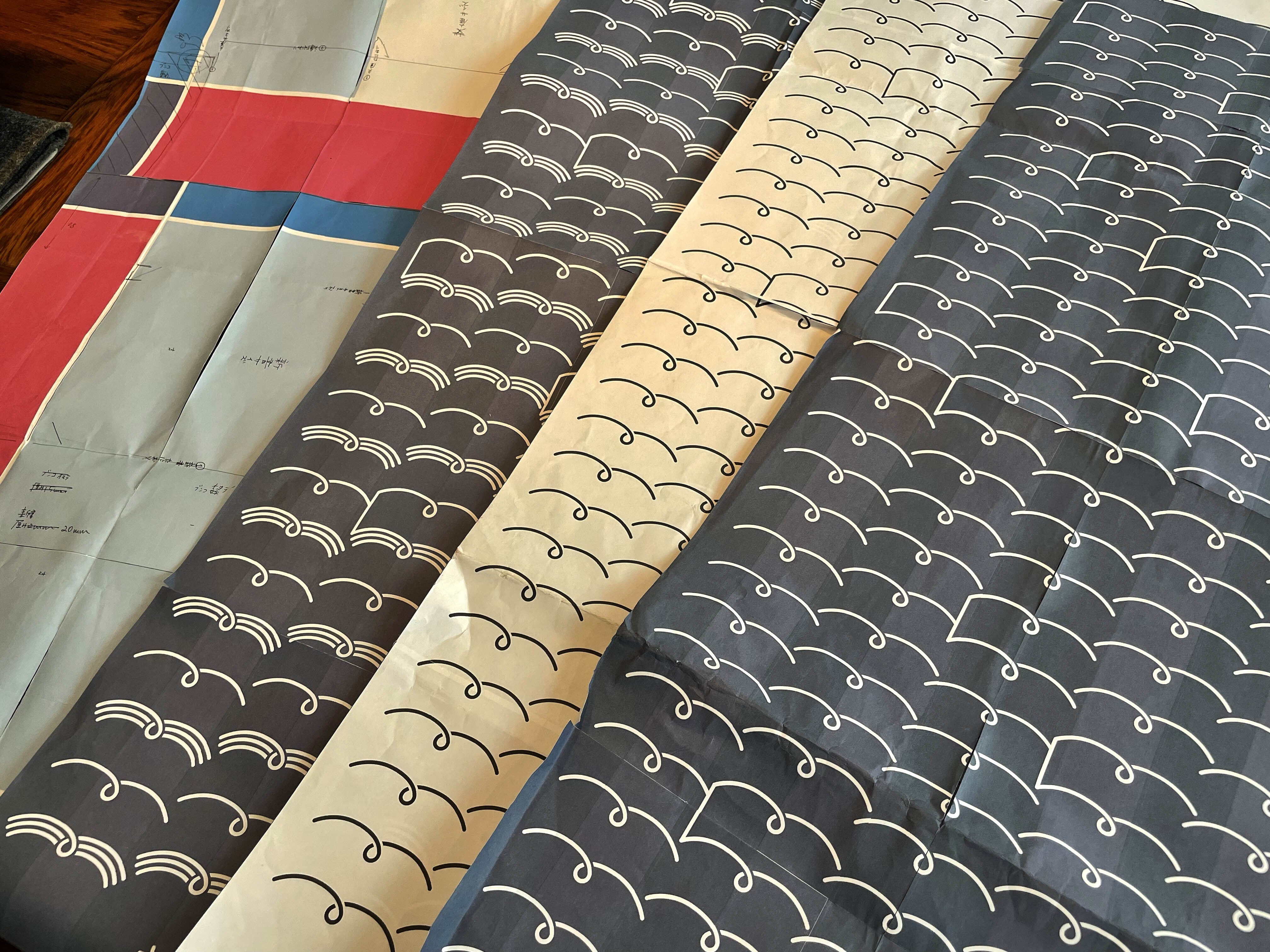 ↑実寸でプリントアウトして確認すると、線の太さなど気になる部分が見えてきます。手ぬぐいの図案と同時に、ロゴも微調整していきました。