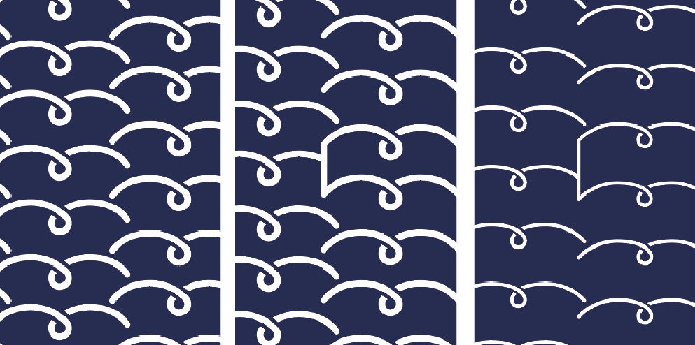 当初はくるくるだけの柄(図左)だったのですが、本のロゴがまぎれていたら良いんじゃない?というプロジェクトメンバー福ちゃんからのアドバイスを即採用。短調さが抜け可愛らしさが倍増しました。さらに、太めの線だったのをすっきりとした細身に修正。少しずつ調整を重ねていき、つなぐばらしさ、ブンコらしさが出てきました。