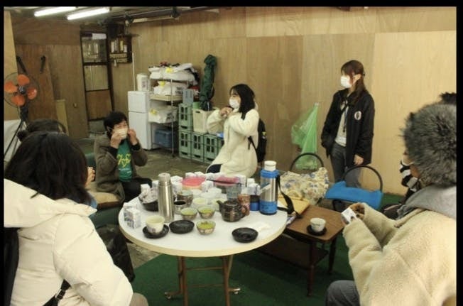 物件見学の様子。 お茶やお菓子などでおもてなしをしていただきました。