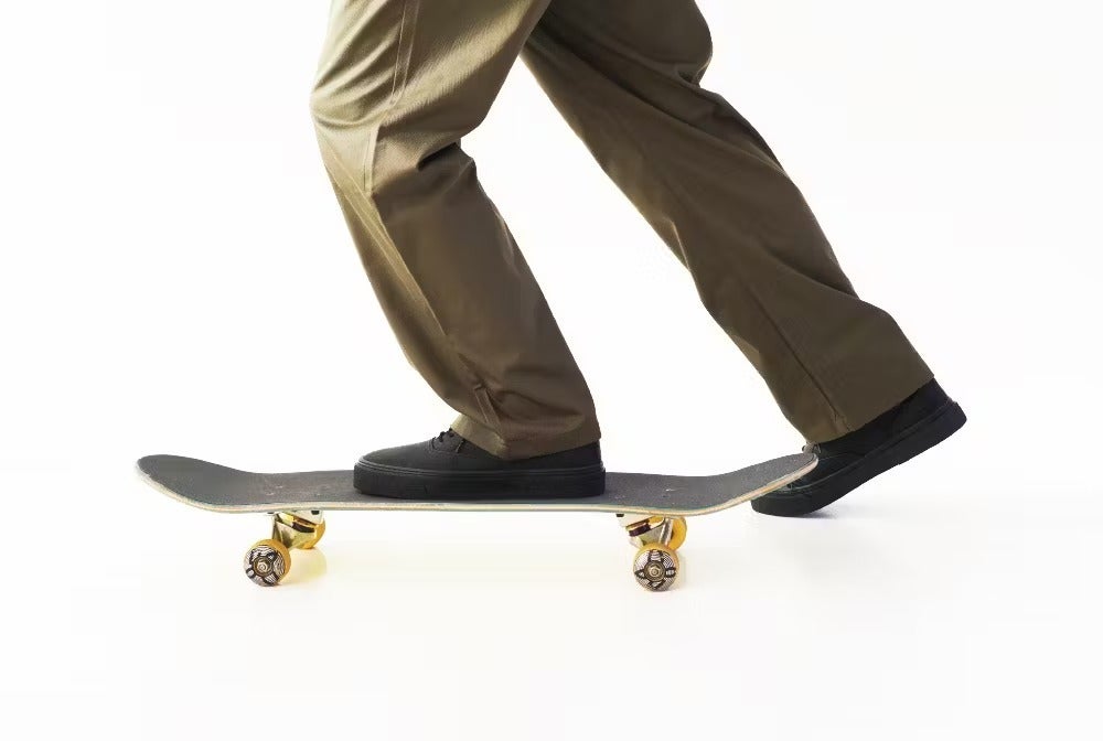 スケートボードシューズお馴染みのバルカナイズ製法で作られた遊び心あふれるスニーカー型ビジネスシューズです。