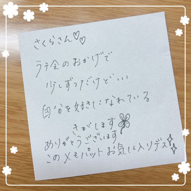 「さくらさんのおかげで少しずつ自分を好きになれてきた気がします」
