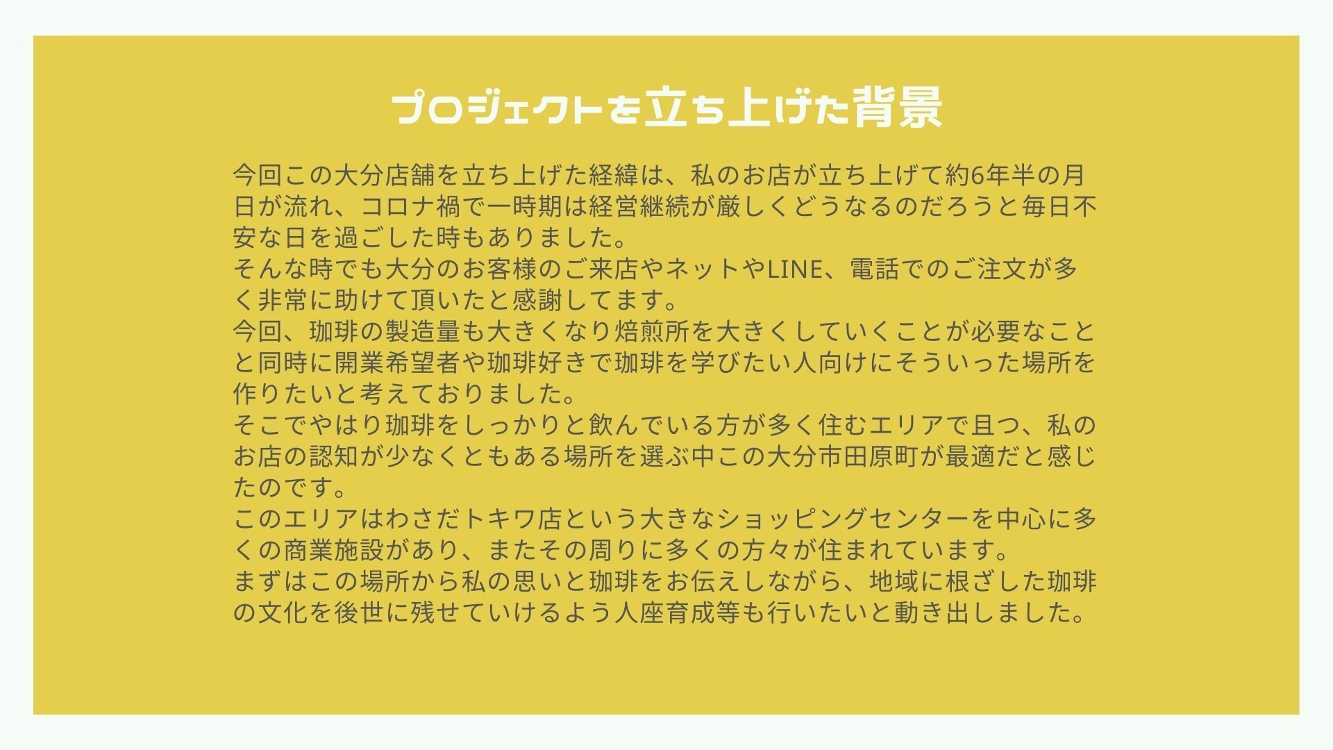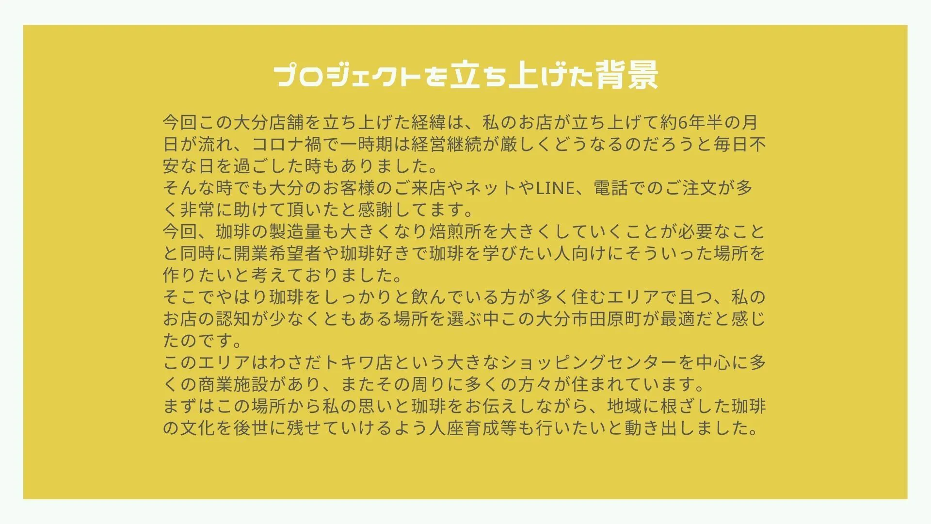 #大分焙煎所計画への応援コメント
