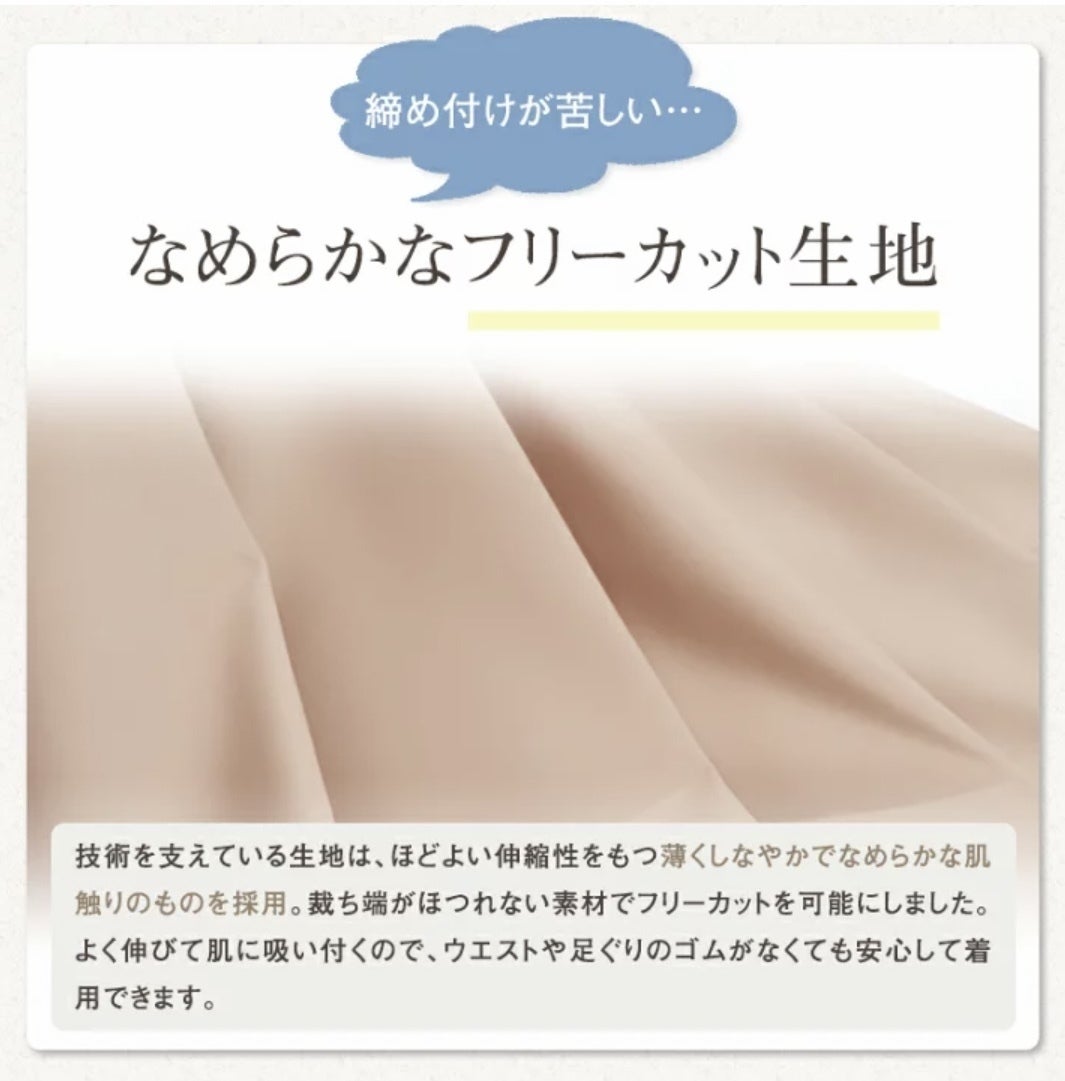 ゴムは取り除き肌ストレスを最大限に軽減、もちろんアウターに響かないノーライン仕様。