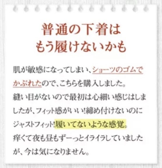 そして早速商品を購入し無縫製の下着を身に着けてみました。