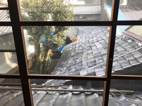 この屋根、けっこう古いんで、スレート屋根にすることを勧められました。