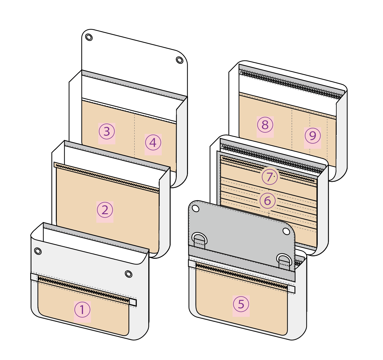 ⑨ペンや鍵などをさすのに便利な小物ポケット