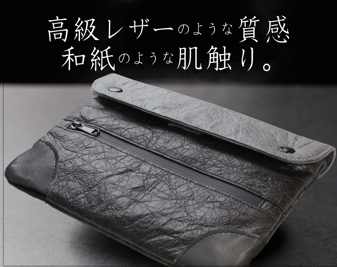 まるでヌメ革をシボ加工した高級レザーのようでもあり、和紙のようにも見える複雑な表情を見せてくれる特殊素材です。