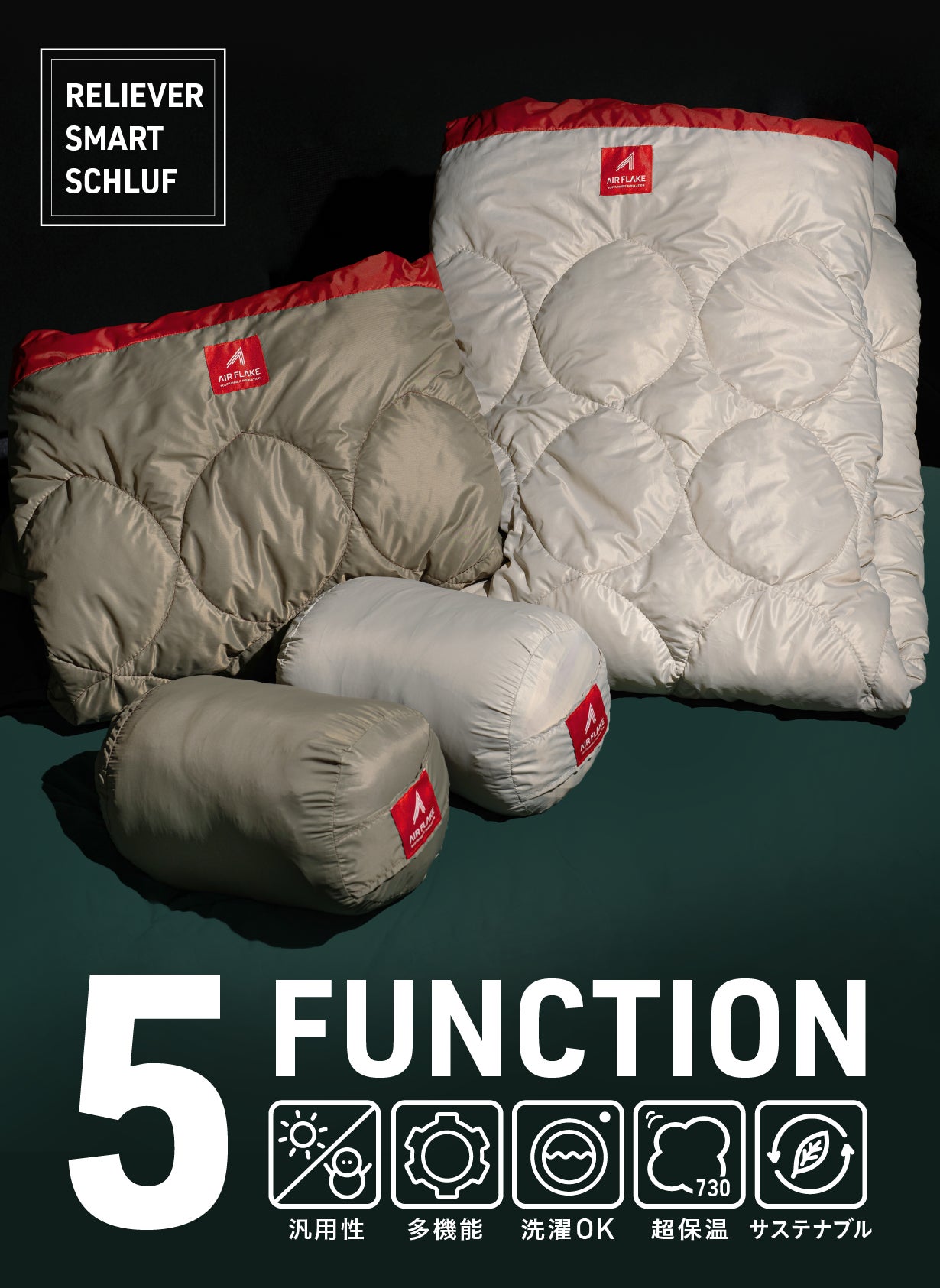 眠りのプロとして、どんな時もいつもと変わらない快適な眠りをお届けしたい!と、 2021年夏、第一弾として、多機能シュラフ「レリーバー®︎シュラフ」を開発。そして2022年春、その第二弾として、もっと簡単に、もっと便利に、もっと気軽に使って頂くために、オールシーズン対応・トランスフォームする・新設計のシュラフ『レリーバー®スマートシュラフ』を開発しました。
