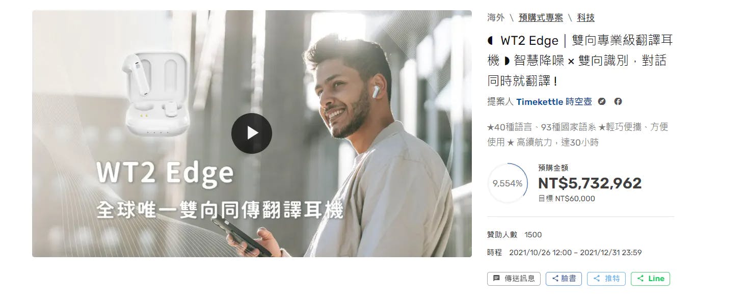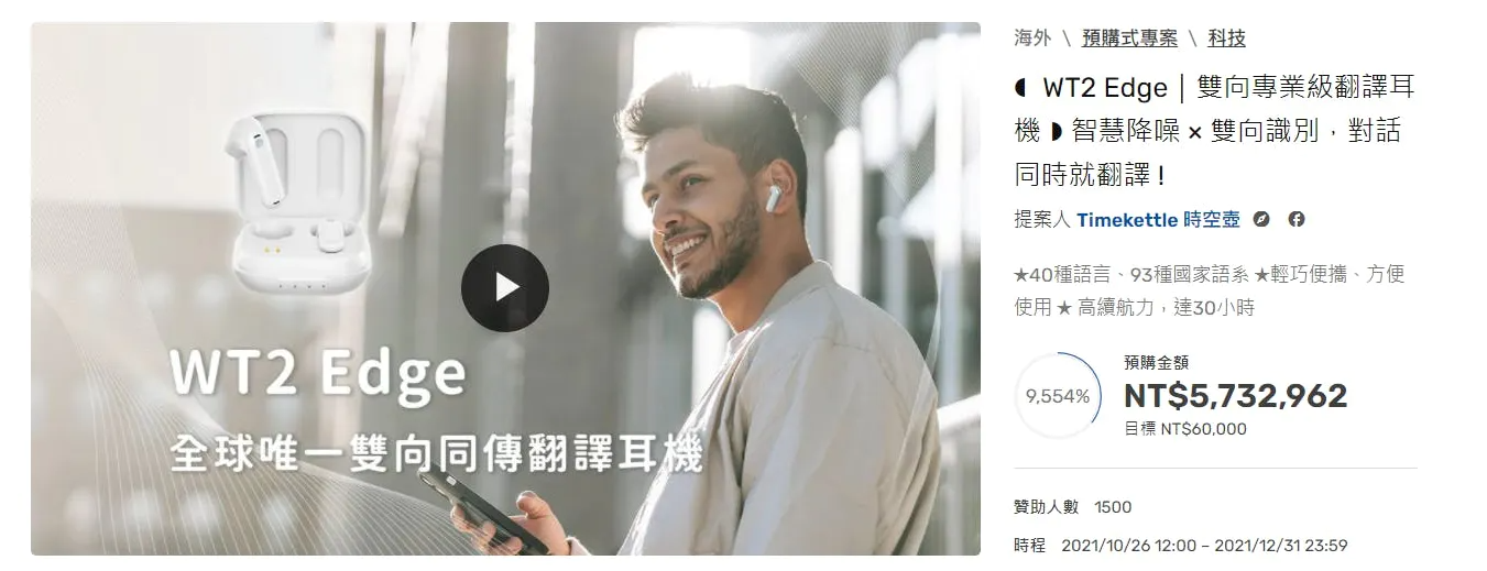 第一弾のイヤホン型翻訳機『WT2Plus』は、お互いがイヤホンをつけて話すだけでリアルタイム翻訳ができるという「翻訳」に特化したデバイス。「耳につける翻訳機」として注目を浴び、ECサイトAm社では2019年から2020年10月15日現在に至るまで、翻訳機ランキングのベストセラー翻訳機に選ばれ続けるなど、タイムケトルを代表する翻訳機です。