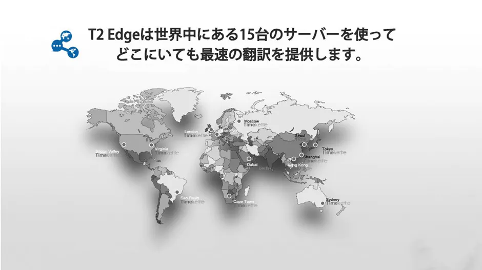世界を股にかけて働くビジネスマンにとって、言語が障害となってビジネスチャンスを逃すようなことがあってはいけません。そのため、「Timekettle WT2 Edge」の翻訳には、世界中にある15台のサーバーが使用されているため、どこにいても最速の翻訳が提供できるように用意されています。