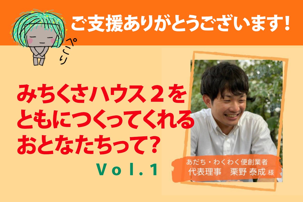 みちくさハウス2の設立が叶った暁には、栗野さんの想いものせて、子どもたちをエンパワー出来る拠点を作り上げていきたいと思います!!