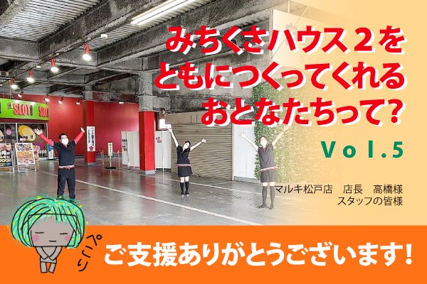 高橋店長にはこのときからお世話になっており、今回のクラウドファンディングでは『ウィーズさんが社会貢献にとても熱心だったので少しでも応援できれば…。家庭環境に悩む子どもたちにはみちくさハウスさんで少しでもゆっくり安心できる時間を過ごしていただきたいと思います。』とご支援をくださいました。