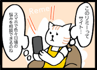 いつもご覧くださり、ありがとうございます。Remeの近藤雄太郎です。 昨日に続きまして、リミーの使い方をリミーママにご紹介してもらいます。 昨日の【パパ編】も、Facebook等でたくさんシェアをしていただき、とても嬉しく思っています! 第2回目の今日は【ママ編】です。 ちなみに、ママさんは現在「主婦」という設定です。 以前は働いていたママさんですが、主婦になってからは、ママ友付き合い・子育て・家事で忙しい日々。 働いていた時とは異なる日々に、ちょっとストレスを感じているみたいです…。 「昔はもっと、自分のための時間があったのに、今はほとんど無いわね…」 そんなことをふと思っていると… ▼▼【ママ編】のマンガでどうぞ▼▼ 【ママ編】のご紹介は、どうでしたか?? リミーでは、30代〜40代の女性からの相談が最も多く、「そうそう」と感じながら読んでいただいた主婦の方も多いかもしれません。 実際に、主婦の方は、ご近所付き合い、家事、育児、介護など、自分以外のために活動する時間が多く、「自分の人生って一体・・・」というお悩みの少なくないようです。 そんなお悩みをお持ちの方に、リミーでは月500円で「いつでも、好きなだけ」精神保健福祉士・臨床心理士さんなどの専門家に相談できるサービスをオープンいたします。 現在、事前お申込み中で、事前お申込みいただいた方は「初月無料」でご相談いただくことができます。 ぜひこちらのページもご覧ください! ▼Reme(リミー)ワンコインサービス▼https://reme-nomal.com/service/