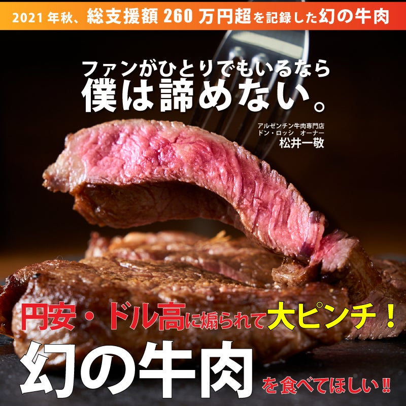 開始24時間で総支援額が60万円達成いたしました! 「臭みがない・あっさりしてる・肉肉しい」今日はこれだけ覚えてください!全てアルゼンチン牛の特徴です。「あっさりってどういうこと?」と思われる方がいらっしゃるかもしれません。脂身が多く柔らかいお肉もとっても美味しいけど、量が食べられなかったり、胸焼けしたりした経験ございませんか?あ〜美味しいのに・・美味しかったのに・・・もっと食べたいのに・・・なぁ〜。もっと食べたい時はアルゼンチン牛肉にシフトチェンジしませんか?ドンロッシのお肉なら脂身が少ないのでたくさん食べられますし、赤みの多いお肉なので、ダイエット効果もございます!ぜひ一度お試しください!ーーーーーーーーーーーーーーーーーーーーーーーーーーーー本日も一日お疲れ様です。これからお仕事の方はいってらっしゃい。こんばんは、ドンロッシ スタッフです。今日は松井にかわり、活動報告をいたします。有難いことに、総支援額が70万円を超えました・・!これも全てはご支援者様皆様のおかげです。ありがとうございます!!初めてご購入くださる方もいらっしゃるようでとても嬉しく思っています。開始して3日目ですが、プロジェクトページのご支援者様のコメントやTwitter・SNSでいただく応援を見るのが楽しみになっています。アルゼンチン牛肉を通して、たくさんの方との出会いがあったことを再認識すると共に、感謝の気持ちでいっぱいです。お一人お一人に直接感謝を申し上げたいところですが、この場を借りて感謝を申し上げます。本当にありがとうございます。明日も精一杯頑張りますので、応援・ご支援・拡散のご協力よろしくお願いいたします!ドンロッシ