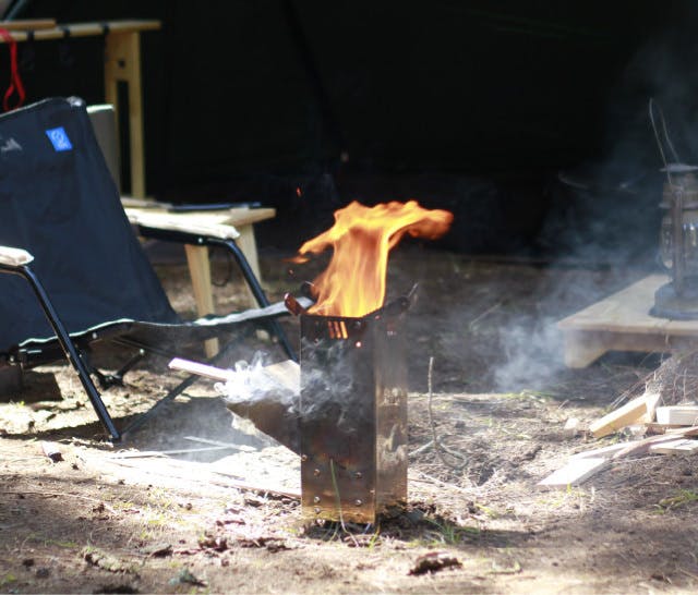 「上級者じゃないと扱えないギア」というイメージが強いですが、誰でも手軽にロケットストーブを活用できるようにというコンセプトで作られた今回のロケットストーブは五徳・燃料のくべ口まで一体型になっているのが特徴です。組み立てに必要な時間はわずか10秒。化石燃料がなくても、松ぼっくりや枝などの身近な材料を使って高火力が得られるので、アウトドアの楽しみ方の選択肢を広げてくれるアイテムです。