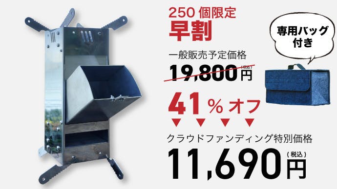 リターン品の配送が完了するまで、ASIA環境健康研究中心株式会社はロケットストーブの日本における独占販売権を有する正規代理店です。詳細に関しては、ページ下部のリスク&チャレンジをご確認ください。