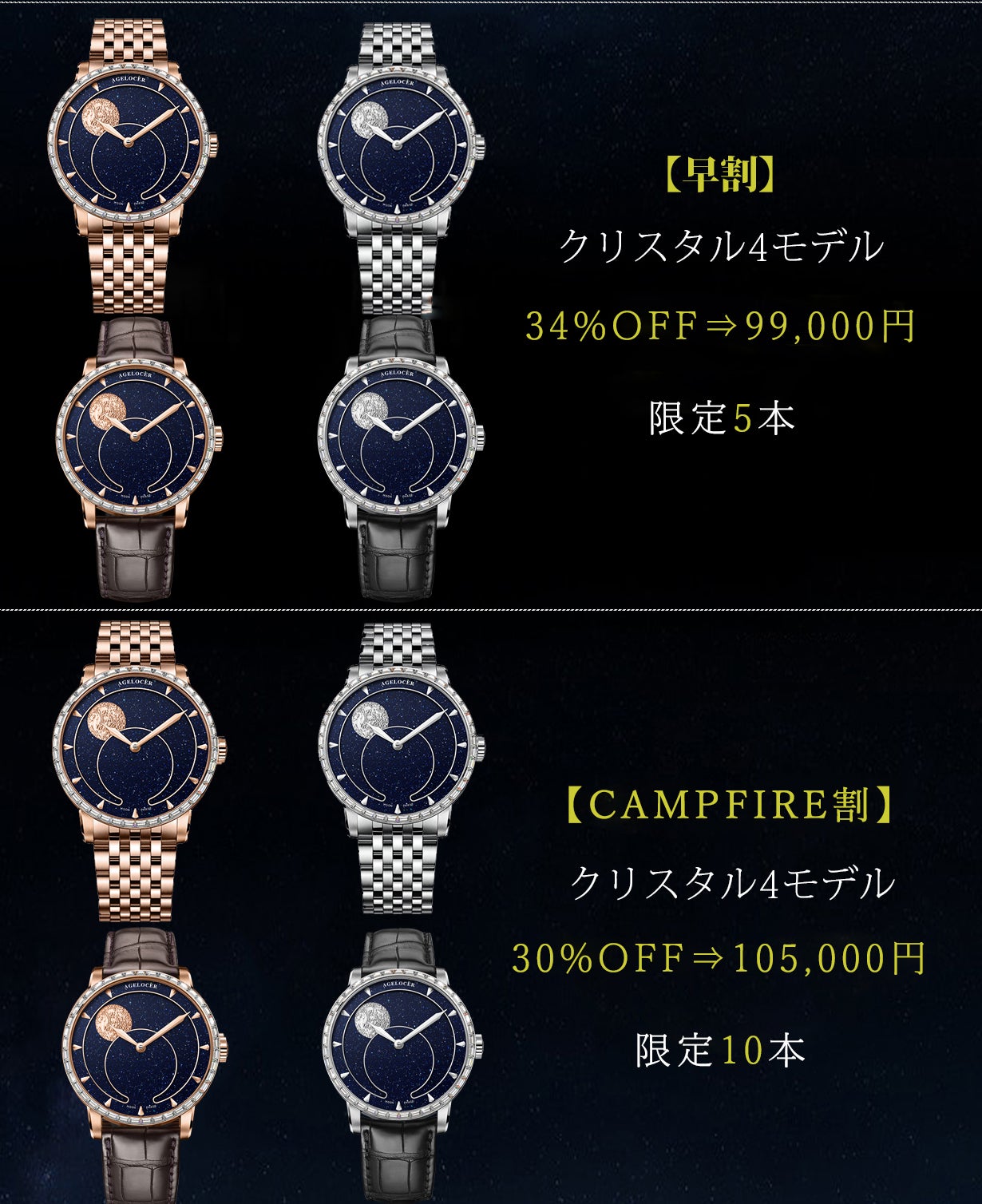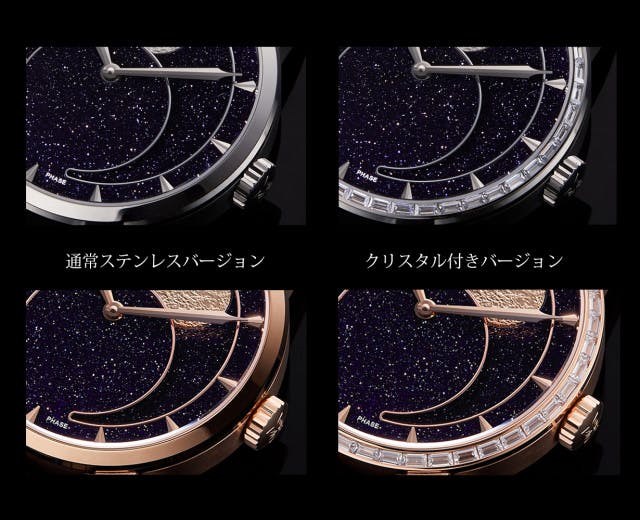ケースは「ステンレスバージョン」と「クリスタル付きバージョン」の2種類をご用意いたしました。