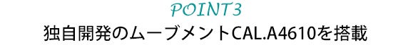 本モデルで採用されているキャリバーCAL.A4610は長期の研究開発を経て完成したムーブメントです。複雑機構を持ちながらも非常に効率的で、優れた耐久性を備えています。