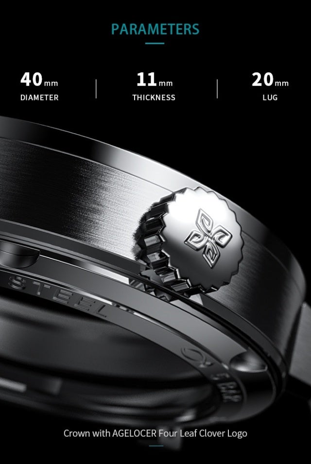 リューズはAGELOCERの四つ葉のクローバーのロゴが刻印してあり、立体感がある設計でデザイン性とリューズの巻きやすさを両立しています。