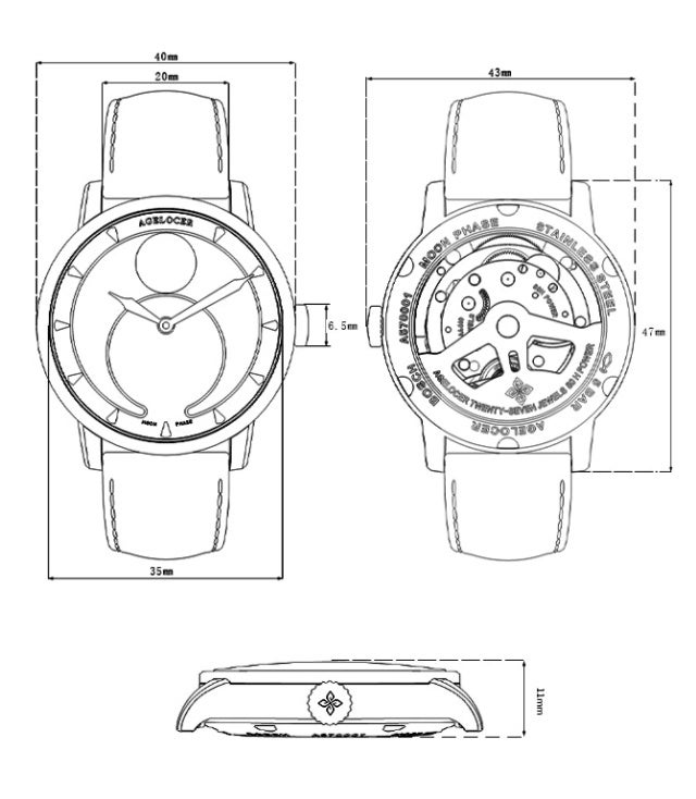 本モデルは国際デザインアワード銀賞を獲得した「AGELCOER reference 6404A1」の後継機として登場した最新モデルです。大自然の美しさと神秘的な月にインスパイアされたムーンフェイズデザインの自動巻き機械式腕時計です。