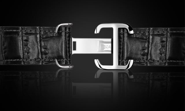 フォールデングバックルはベルトに穴を開ける必要がなく、バンドの劣化を軽減させ、着脱しやすく、腕時計が滑落しづらくなっています。着脱の機会が多くても快適で、装着感もよく、使い勝手にも配慮しています。