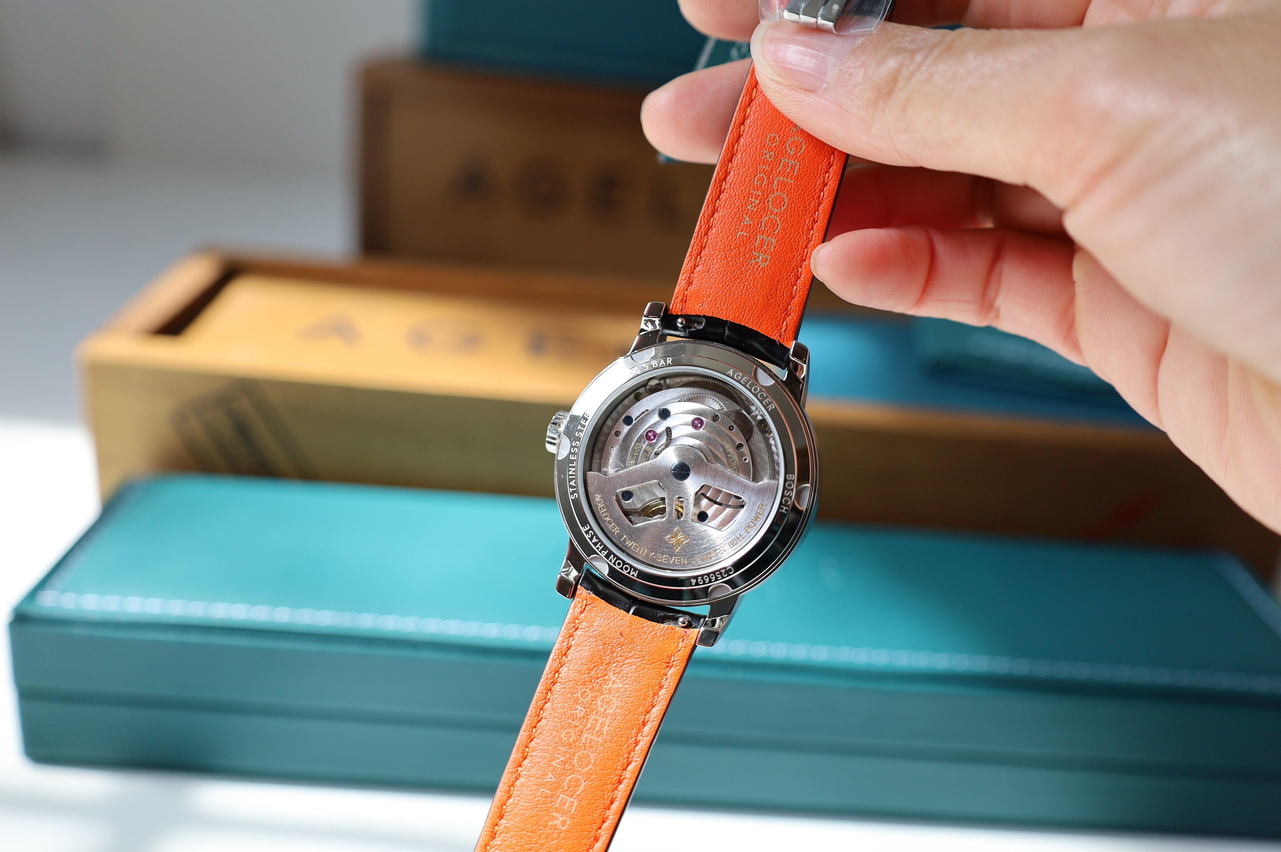 AGELOCERは全てオリジナル設計で、高いクオリティでありながらも既存の枠組みを逸脱し、固定観念からはみ出す「遊び心」をもったユニークなデザインと思っており、以前からこのブランドの時計を皆様にご紹介したいと考えておりました。メーカーと交渉を行ってまいりましたが、今回ようやく皆様にご紹介することができました。