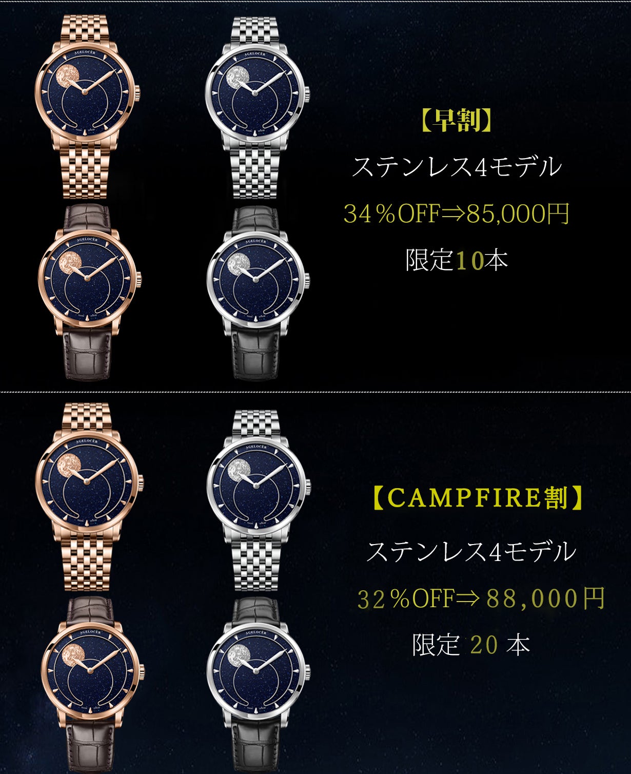 ※リターン品の配送が完了するまで、アライス合同会社はAGELOCERの日本における#アベンチュリンムーンフェイズモデル(本モデル)の独占販売権を有する。並行輸入品が発生する可能性がありますが、並行輸入品には正規代理店による製品サポートを受けることができません。
