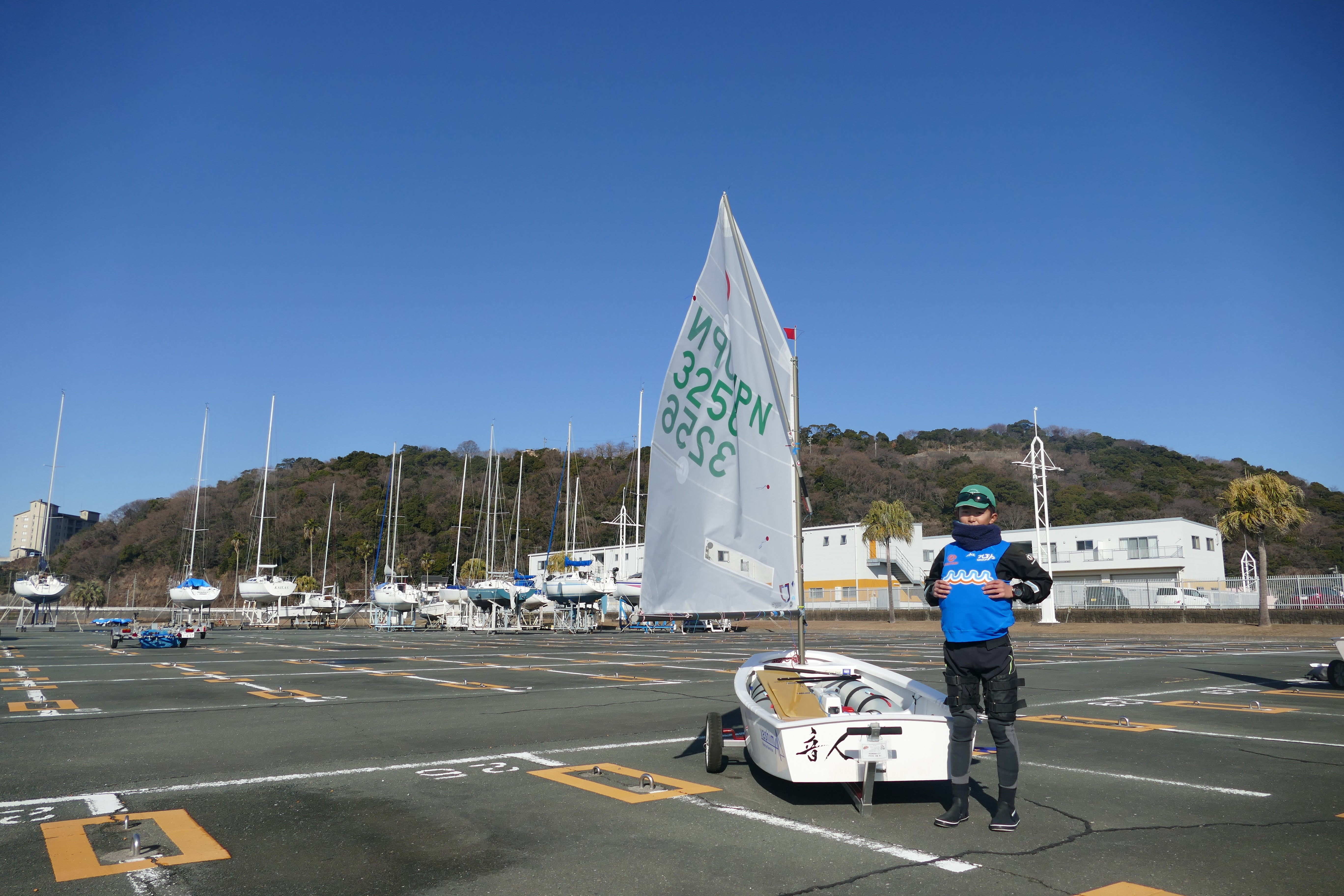 僕が乗っているOP級のヨットは一人乗りで、自分で操縦します。