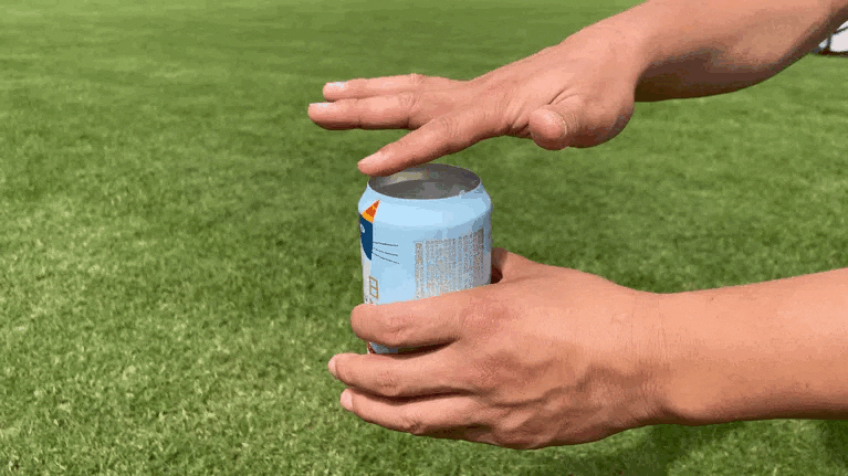 缶の上部にMkIIIを装置し、左右のレバーで挟みます。そのまま上から手を添え、2周回します。レバーを押したまま、上蓋部分を缶から離せば完了です。