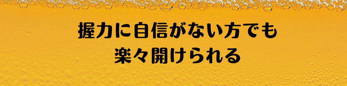 缶切りや栓抜きのような、力が必須のテコの原理はいりません。やってみると楽しくなってきて、いくつも開けたくなってしまうかも…。でも、飲み過ぎにはご注意を!