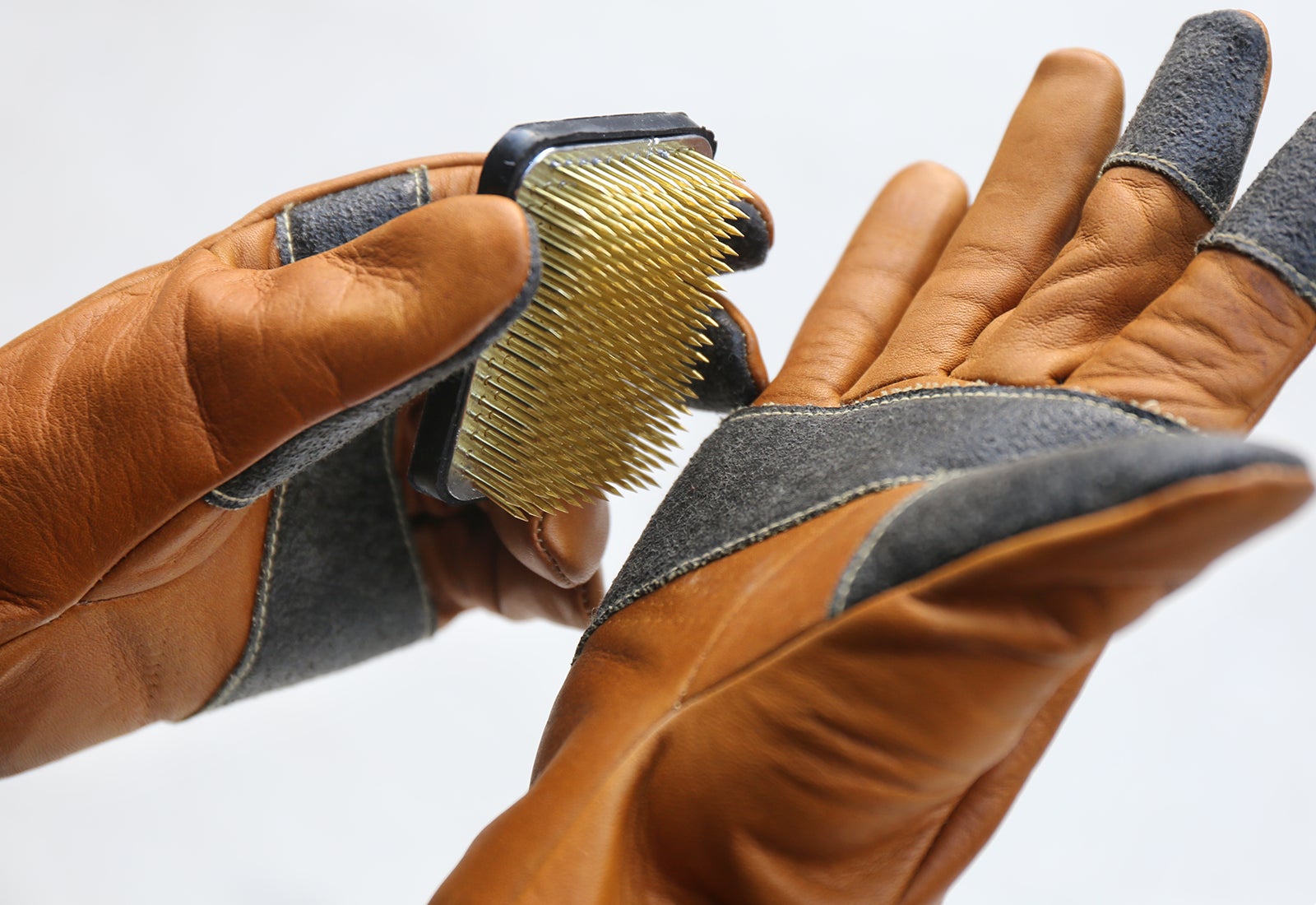 1.3mmの牛革をベースにし、薪をつかむことの多い指先の素材を変える事でさらに、火に強く焚き火用としてお使い頂けます。