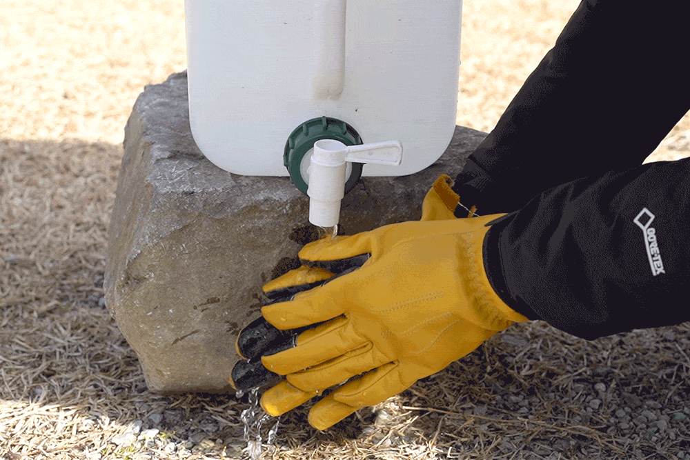 グローブをしたままサッと水で流せるので火を熾した後、炭の汚れを落として食材を切るなどすぐに次のタスクに移ることができ、衛生面でも心置きなくお使い頂けます。